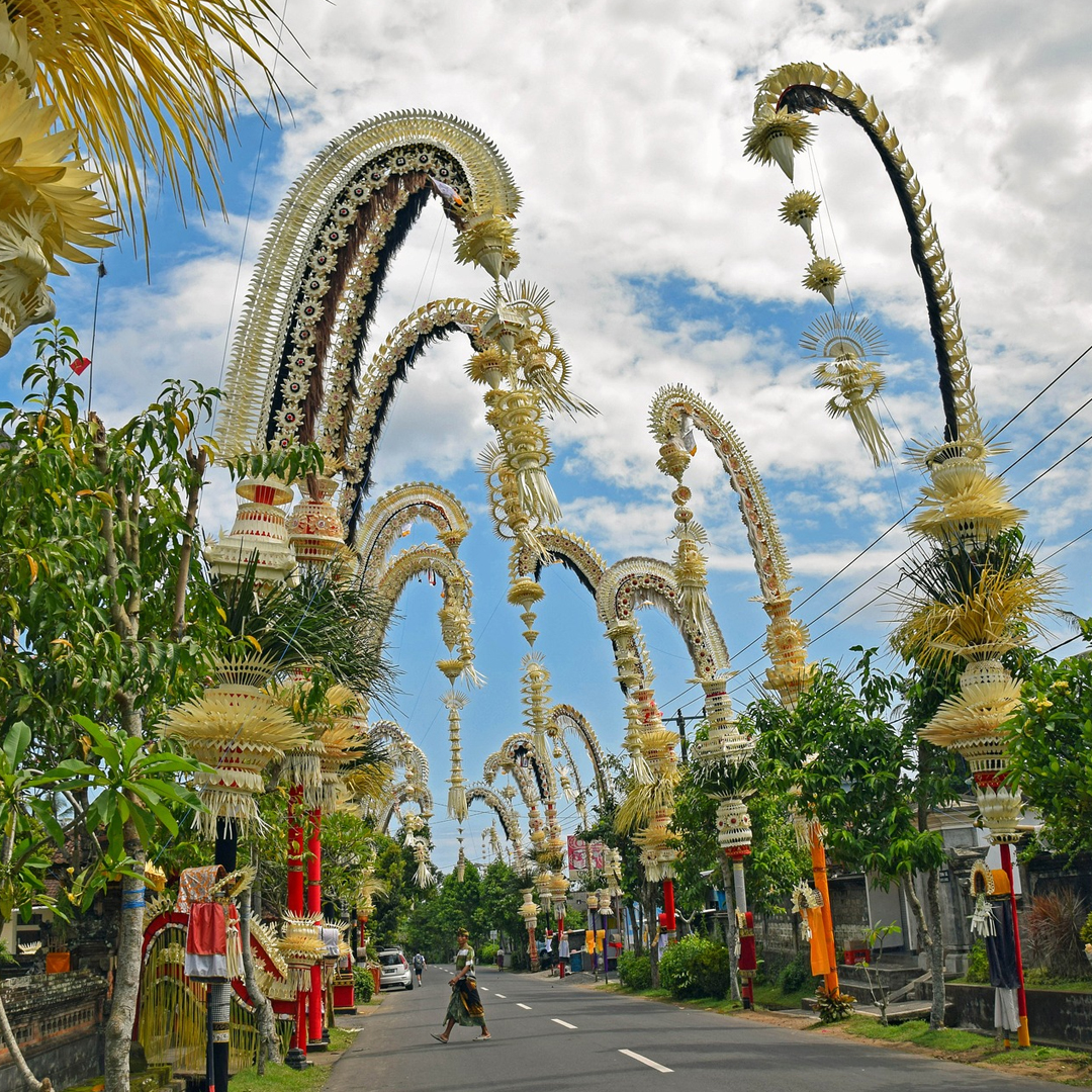 | | Galungan & Kuningan25 March 2020 - All Over BaliNyepi is a Balinese "Day of Silence" that is commemorated every Isakawarsa (Saka new year) according to the Balinese calendar (in 2019, it falls on March 7). It is a Hindu celebration mainly celebrated in Bali, Indonesia. Nyepi, a public holiday in Indonesia, is a day of silence, fasting and meditation for the Balinese. The day following Nyepi is also celebrated as New Year's Day.[1][2] On this day, the youth of Bali in the village of Sesetan in South Bali practice the ceremony of Omed-omedan or 'The Kissing Ritual' to celebrate the new year. The same day celebrated in India as Ugadi. Observed from 6 a.m. until 6 a.m. the next morning, Nyepi is a day reserved for self-reflection, and as such, anything that might interfere with that purpose is restricted. The main restrictions are no lighting fires (and lights must be kept low); no working; no entertainment or pleasure; no traveling; and, for some, no talking or eating at all. |