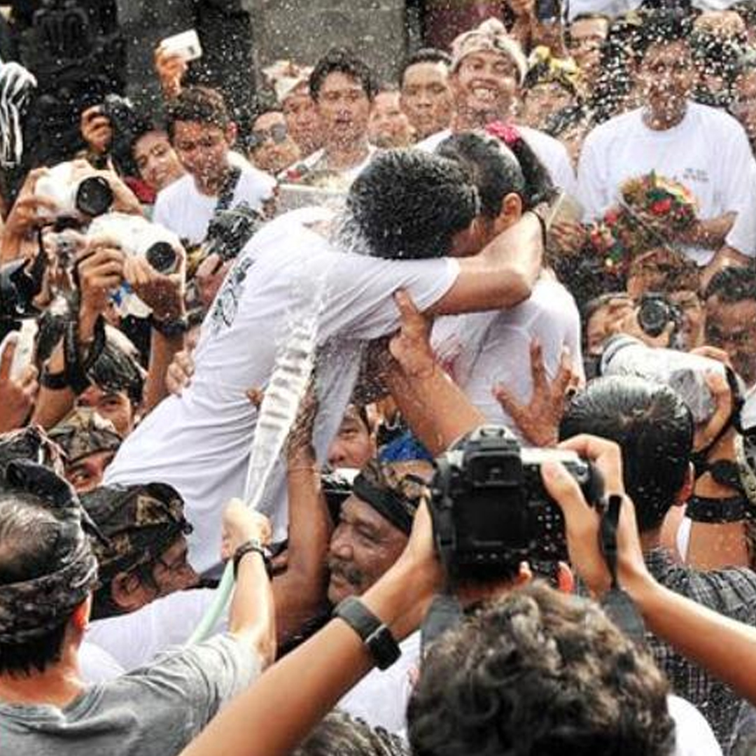 | | Omed Omedan26 March 2020 - Banjar Kaja Sesetan, DenpasarWhat could be more exciting than a crowd of unmarried guys and girls of 17 to 30 years kissing on the streets? The kissing festival takes place on the day after Nyepi (Saka New Year) and is a fun dating strategy. Literally meaning "pull-pull", omed-omedan is a ceremony when boys stay on one side of the road, and girls—on the other. The boys then run to the girls, pull them and kiss, while other people in the crowd pour water on them. The water pouring is a very important feature not only due to its fun, but it is also believed that this will cool the heat and tension down between the kissersThis ritual has helped many couples to meet and start dating. The Omed Omedan usually starts at around 2pm. If you want to observe it, arrive early to secure good viewing position. Protect your camera or any other electronic devices as there will be water everywhere. Apart of the festival there will also be a street bazaar with lots of traditional food and crafts. Live music and funny performances will entertain the crowd before the ritual begins. |
